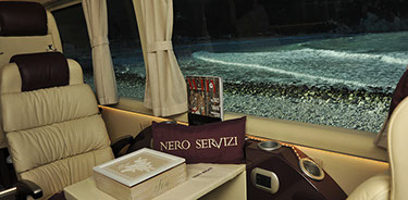 Spazio, comfort e qualità a bordo. Questo luxury van si adatta soprattutto a lunghi viaggi. I suoi interni sono lussuosi e curati nei minimi dettagli, dalle poltrone in pelle e reclinabili, ai molteplici servizi a bordo quali TV, wi-fi, snack bar.